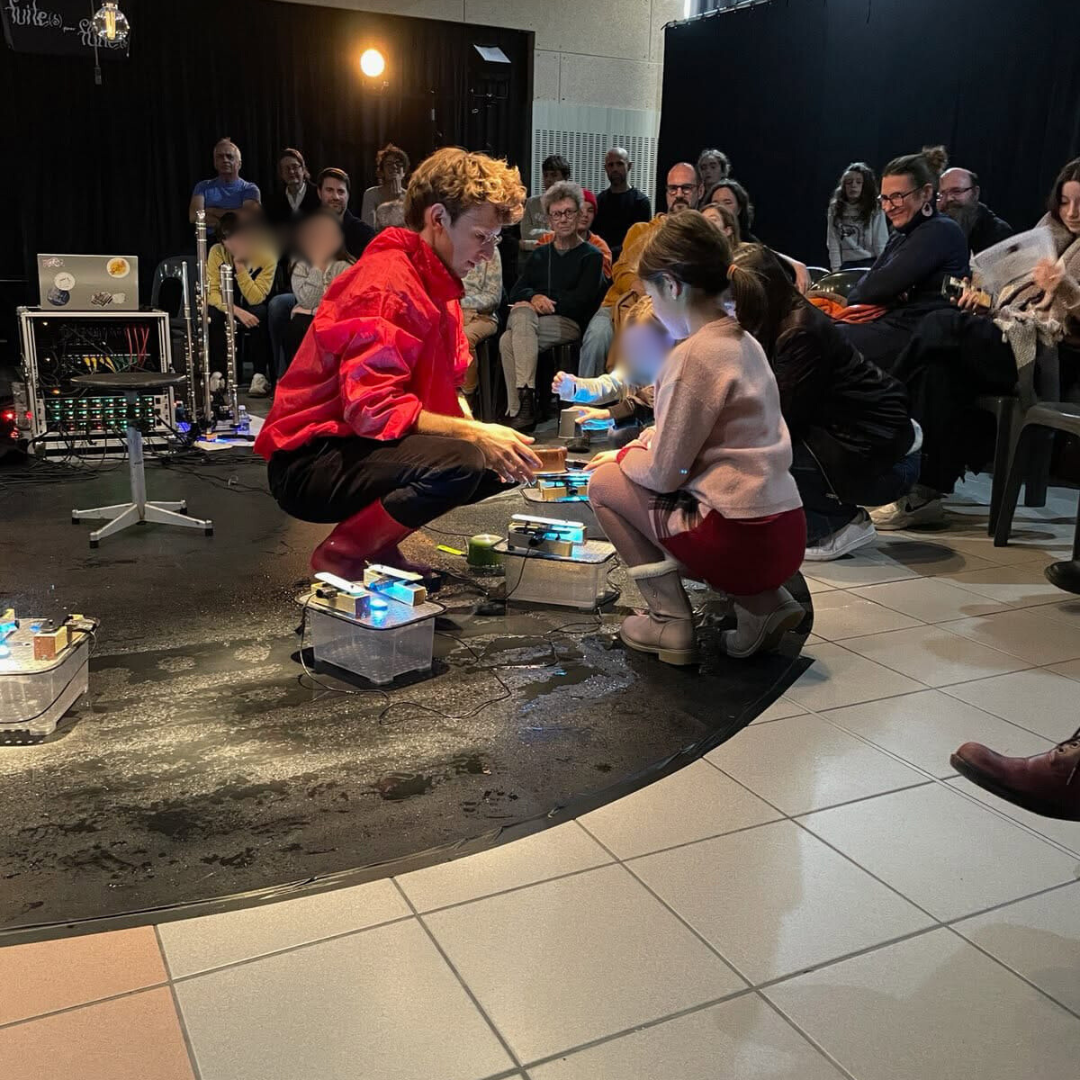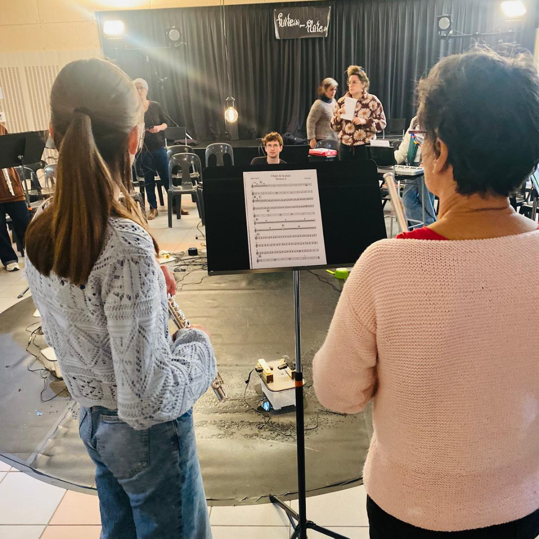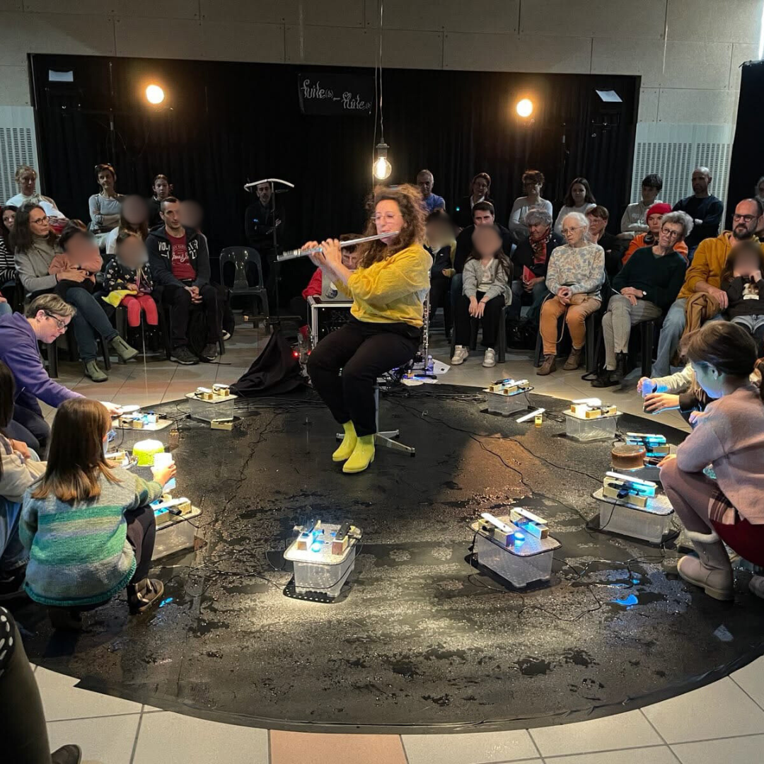 Après l’atelier, place au spectacle Fuite pour flûtes : Un moment poétique et immersif où l’eau est devenue musique. Entre gouttes, métal et flûtes, Lucie Jahier et Léo Rousselet ont créé un paysage sonore d’une grande finesse, à la fois intime et captivant.