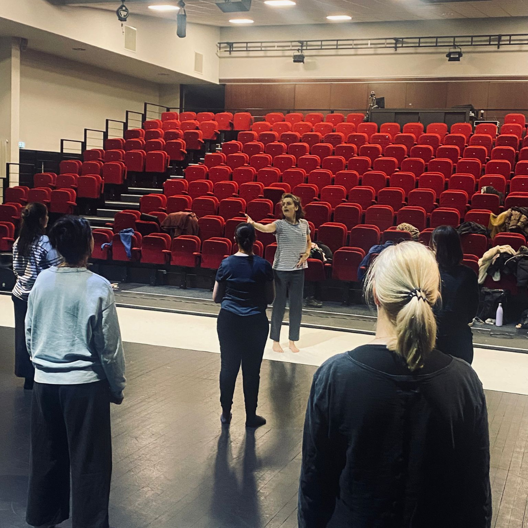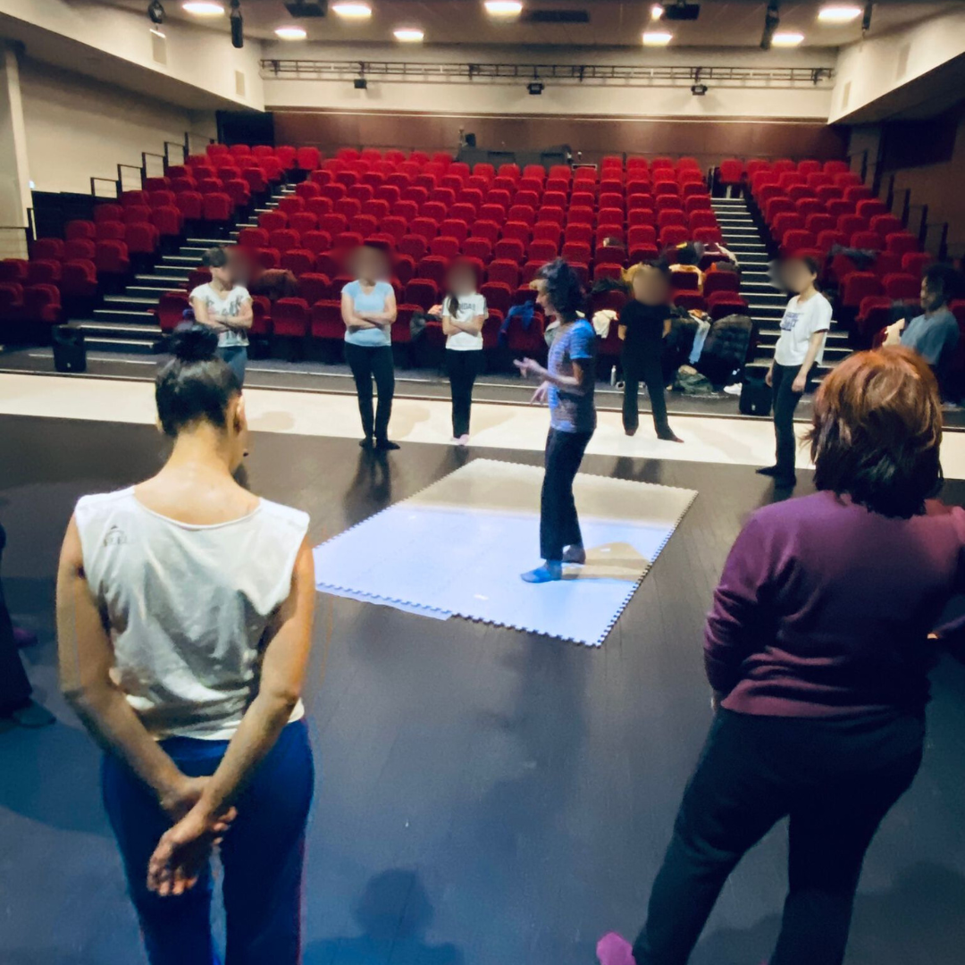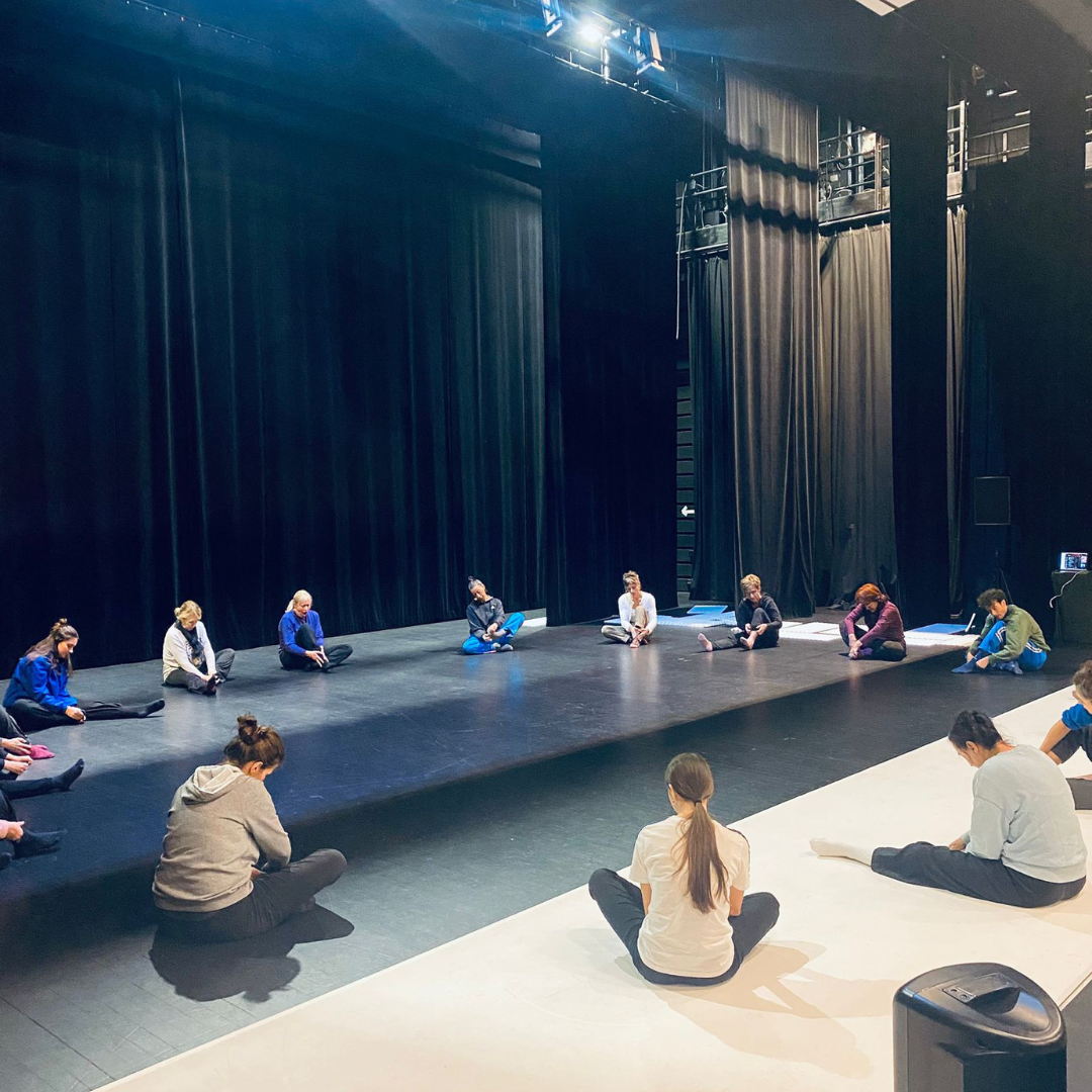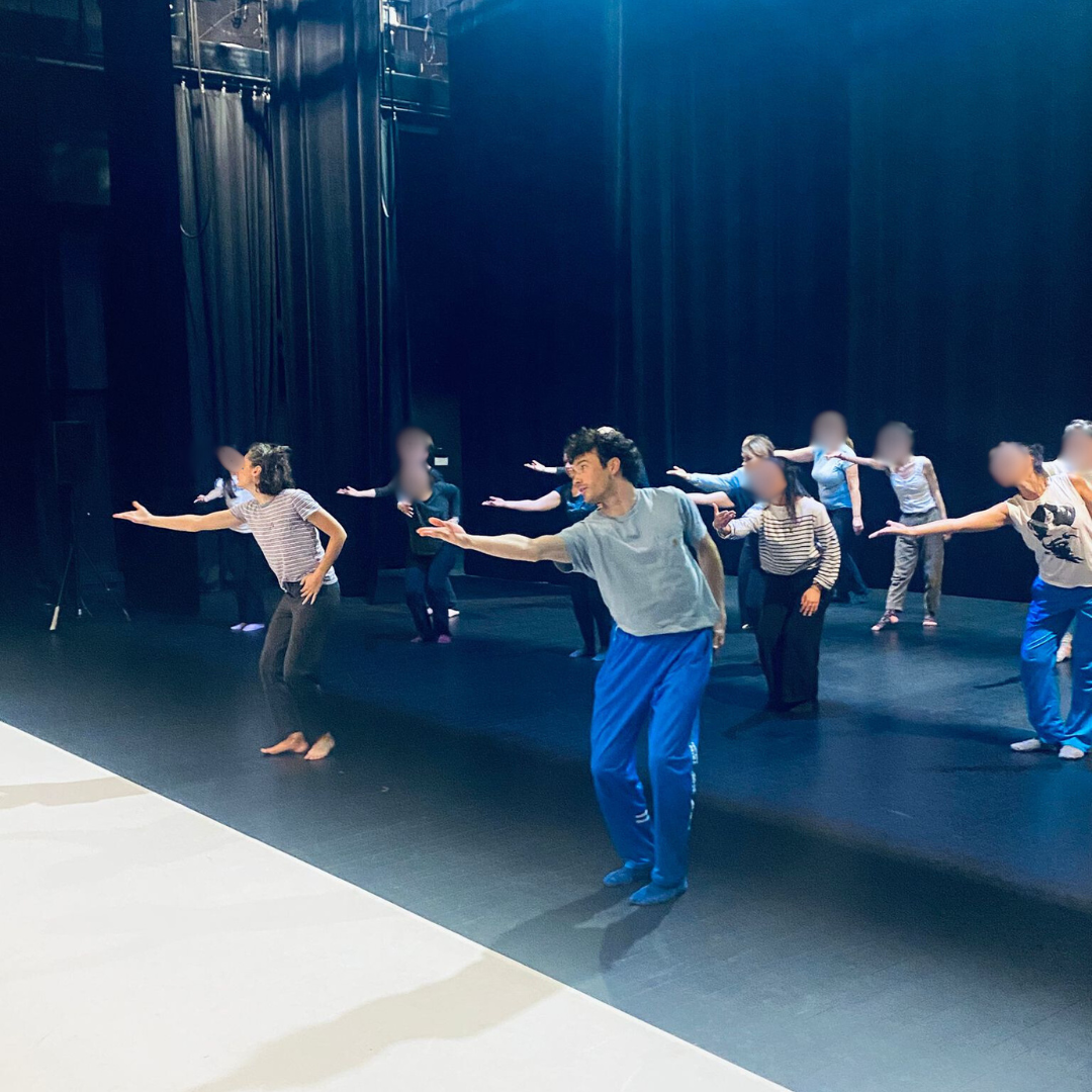 À travers des duos dansés en connexion, les participant·es sont partis à la rencontre de l’autre, explorant l’imaginaire du patinage et la sensation de glisse grâce aux dalles de la scénographie. Porté par les musiques du spectacle, l’atelier a permis de plonger pleinement dans l’univers sensible et esthétique de la compagnie.