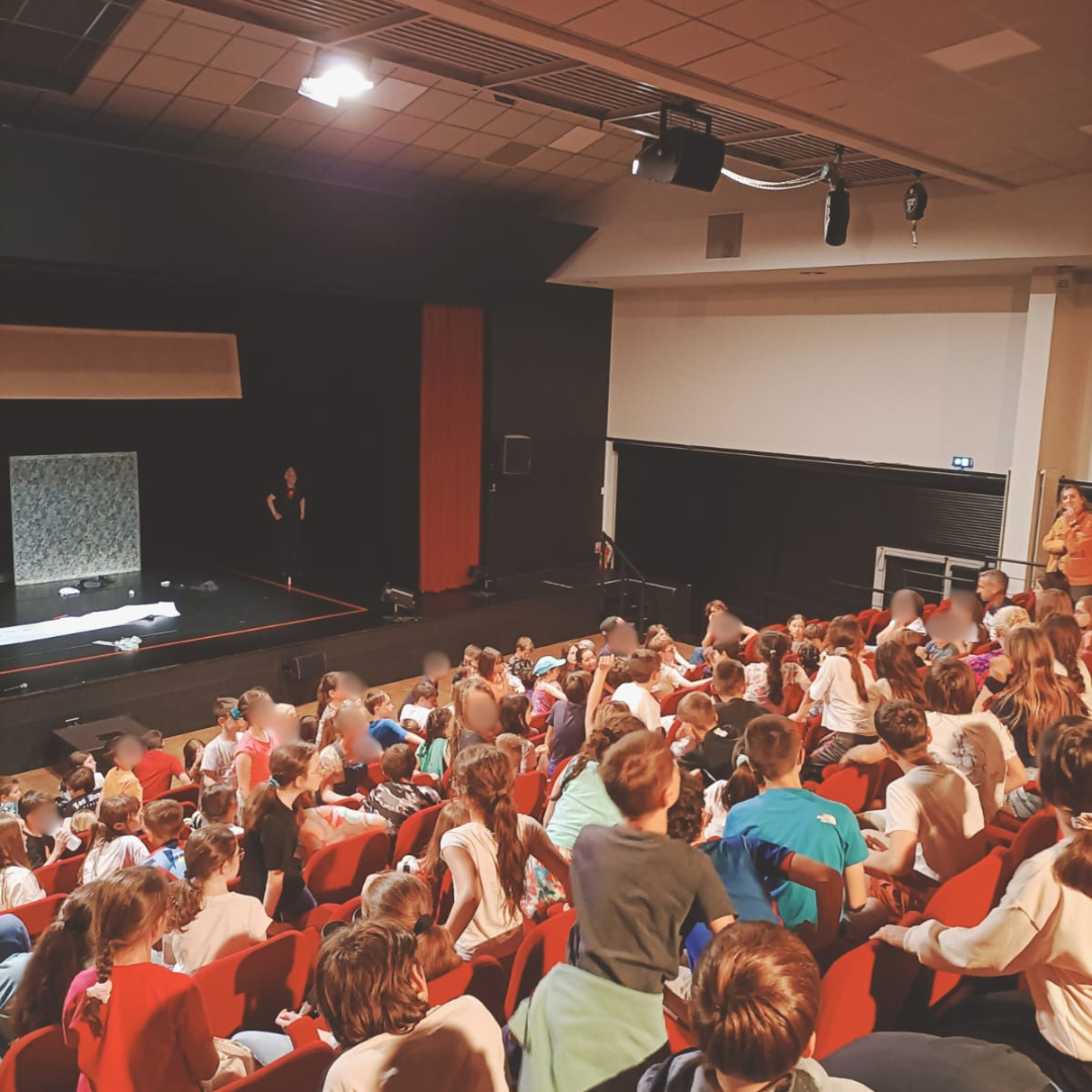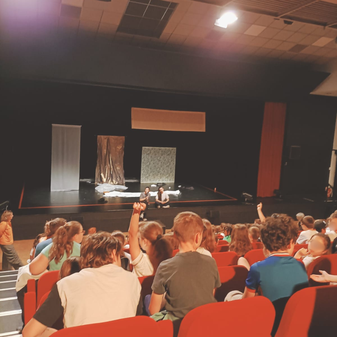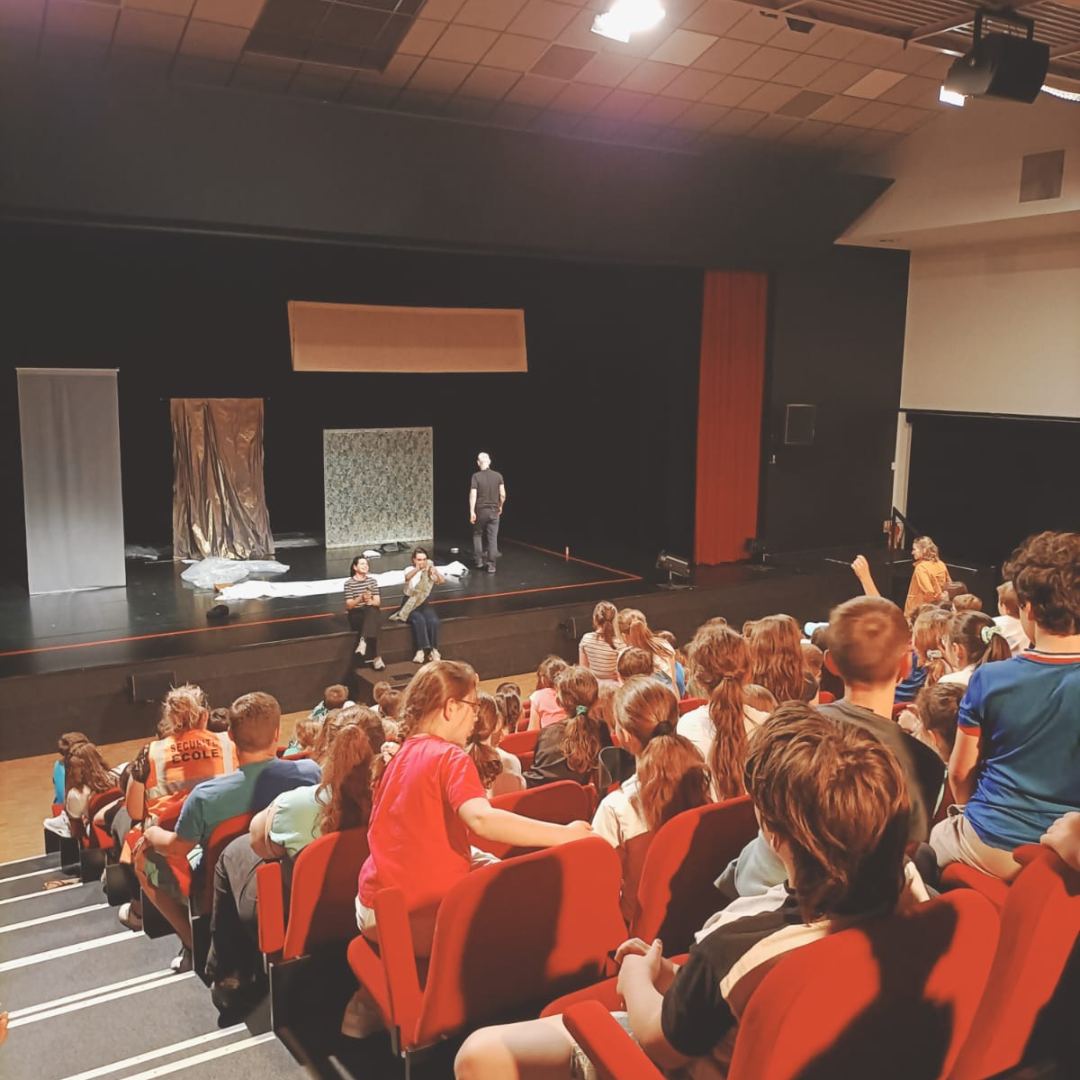 À l’issue des représentations, les élèves ont échangé avec le régisseur et les deux comédiennes de la Cie La Rousse. De la technique au jeu, en passant par la narration, ils ont pu poser leurs questions et découvrir les coulisses du spectacle et du théâtre !